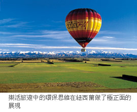 紐西蘭觀光局台灣區經理劉碧珍表示,一直以來使用「百分百完全純境紐西蘭」為觀光局推廣口號,其因在深知大自然風光就是紐西蘭推廣旅遊的最大資產,顯見觀光局在樂活旅遊的進程上,其實是較早開始經營的。