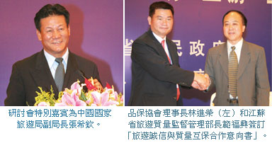 本次研討會除了吸引了蘇台兩地約200多位旅行業者、旅行公協會代表、媒體共襄盛舉,也在會場簽訂多項合作協議,如台灣品保協會與江蘇省旅遊協會代表簽訂的「旅遊誠信與質量互保合作意向書」、江蘇省旅行社代表與台灣代表簽訂「互送遊客協議」、「進一步加強旅遊合作協議」等,對於去年對江蘇送客人次表現優異的台灣旅行社,也在研討會上頒發「江蘇旅遊突出貢獻獎」以示鼓勵。會議結束後,旅行社業者即開始展開為期7日的考察行程。