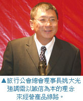 旅行公會總會理事長姚大光於會議中提到,走入大三通的階段,旅業應該深思的還有避免殺價競爭的議題,因為唯有合理的報價並提供優質的服務內涵,才是永續經營閩台產品的不二法門。未來他亦呼籲福建相關旅遊部門與產業代表,可以多組織客源到台灣觀光,讓互相送客的機制越來越成熟。
