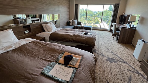 富士豪景飯店腹地廣大,除了綠意盎然的日本庭園外,園區內還設有短距離高爾夫球場與網球場,旅客可以在大自然中享受運動樂趣,行程更加豐富。設有79間客房,包含和室、和洋室與洋室等房型,其中雙床房佔39間,能依照團體或個人需求靈活安排。部分房型可遠眺富士山或河口湖,讓入住本身就成為一種度假體驗。交通也十分便利,由中央道河口湖IC僅需10分鐘即可抵達,館內設有免費停車場可容納約80台車。距離富士急行「河口湖站」車程約8至10分鐘,並提供定時接駁巴士。