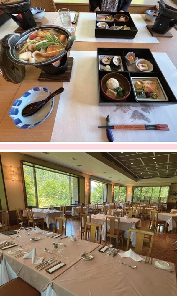 飯店餐廳空間寬敞明亮,部分座位可欣賞富士山或庭園景色,十分適合安排團體午餐或住宿團體的餐食接待。餐點則嚴選山梨與富士五湖地區的新鮮食材,結合日式與西式料理手法,呈現出色的團膳佳餚。無論是午餐套餐或自助形式早餐,都能依照需求靈活安排,搭配在地葡萄酒更能提升用餐氛圍。
