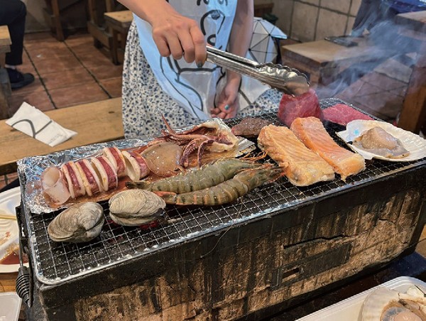 ▲在八食中心選購好食材後可以在七厘村現烤料理。