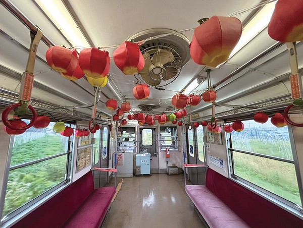 ▲大鰐線蘋果睡魔列車內部的燈籠裝飾。