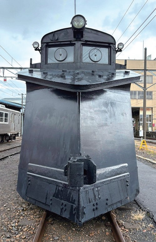 ▲「犁式除雪車」專門用來清除鐵軌積雪,是冬季最佳幫手。