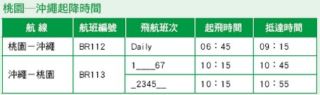 長榮航空將於6/17起開闢桃園─沖繩航線,即日起開始接受訂位,提供赴沖繩的旅客更多的選擇。長榮航空表示,去年台灣赴日旅遊人數超過234萬人次,創歷年新高,預期今年仍會持續成長,因此選擇在暑假旺季來臨之前,開闢台北─沖繩航線,讓台灣的民眾只要90分鐘的飛行時間,即可輕鬆沖繩的沙灘、陽光、美食以及購物樂趣。