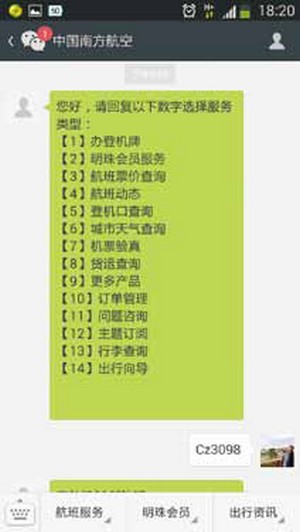 2.中國南方航空微信