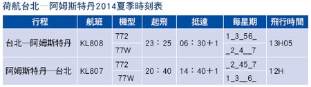荷蘭皇家航空公司-法國航空於4╱22假台北六福皇宮舉行「2014年度同業產品說明會」。荷航在票價區域做調整,原屬歐洲一區的阿姆斯特丹獨立出來,而原「歐洲1區」新增西班牙、葡萄牙、丹麥、瑞典、挪威、捷克等國;各區域在搭乘商務艙更推出Z艙等的選項,全線10萬元以下(未稅)的超值價,在經濟艙部分也祭出較優惠的艙等選擇。長程線波音777機型環宇商務客艙將於今年夏天更改新式座椅,可180度平躺、207釐米長、擁有17吋個人螢幕視聽系統,讓旅客享受更舒適的航程。