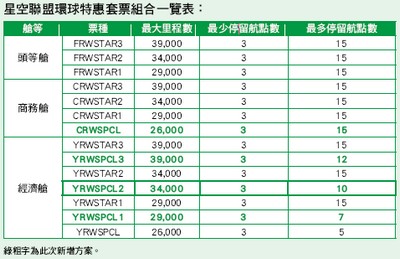 更多詳細資訊請洽網址:www.staralliance. com/en/fares/round-the-world-fare/。