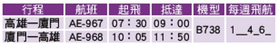 華航集團7月起將提供高雄—廈門— 高雄 商務艙服務