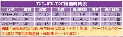 台北直航紐約更改班號