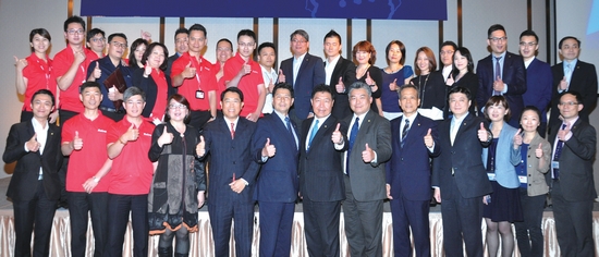 ▲(前排左4起)Sabre先啟資訊副總經理蔡蕙伃、董事長何漢業、中華航空台灣區處長董國樑、客運營業處副總經理張志潔、台灣地區行銷協理華德麟、台北分公司客運營業部副理藍朝榕、台北分公司營業部副理胡鴻鈞、台北分公司客運營業部業務副主任黃海涵、台北分公司客運營業部副理顏子超(前排右1)與華航、Sabre團隊合影。