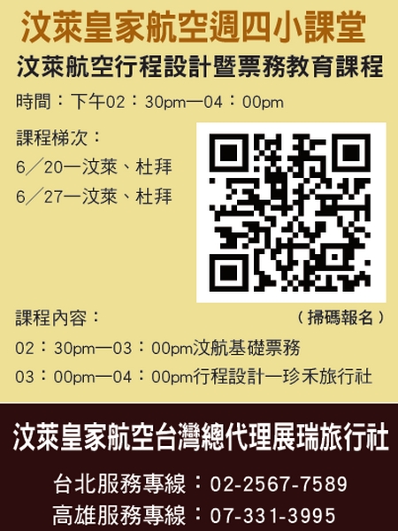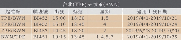 獲得APEX航空評比機構所頒發的4星級亞洲區優質經濟艙、亞洲區域優質航空公司的汶萊皇家航空,台北出發到汶萊斯里百加灣自6╱23起,增班每週日1個班次,由原來每週一、四、五共3班,改為每週一、四、五、日,讓旅客有更佳的航班選擇,彈性安排行程。