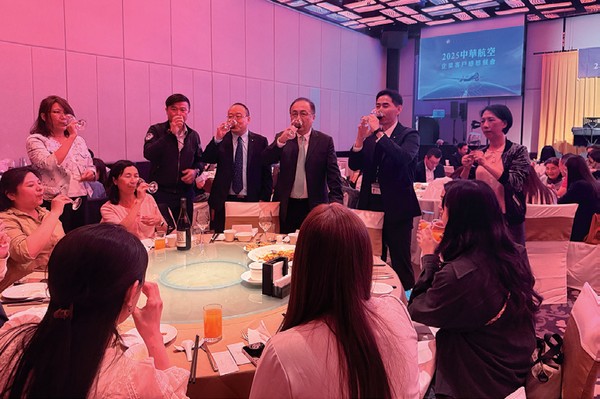 ▲席間中華航空團隊更逐桌敬酒,對合作夥伴表達滿滿謝意。