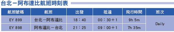 ▲阿提哈德航空於9/7開通台北-阿布達比,為旅客提供前往中東旅遊與歐洲轉機新選擇。