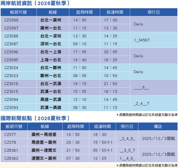 ▲南航針對兩岸市場於部分日期加大機型為B777-300ER,以滿足旅客飛行需求。