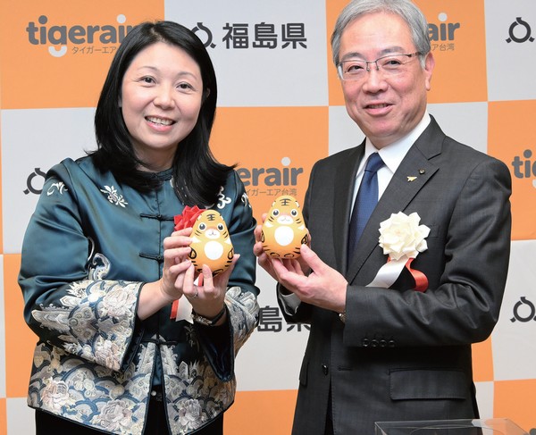 ▲(左起)台灣虎航董事長黃世惠、福島縣副知事佐藤宏隆。