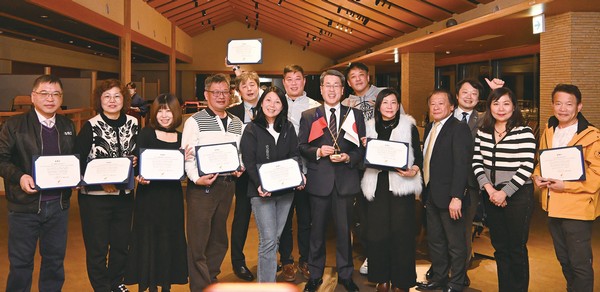 ▲福島縣觀光交流局局長藤城良教(前排左6)致贈感謝狀給予推動福島觀光的台灣合作夥伴。