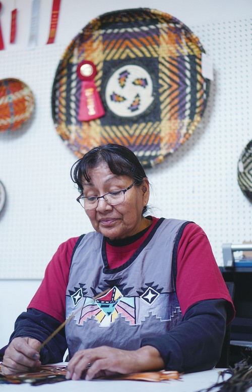 來自太陽氏族(Sun Clan)的編織藝術家Iva Honyestewa,擁有超過35年經驗的她,以線圈與篩筐編織聞名。Iva的藝術始於大自然,她採集野生的絲蘭(Yucca),使用自然植物染,如野菠菜、蜀葵花、向日葵種子。其作品中心常可見到菱形圖案,名為「肚臍」,象徵「生命的開始」。