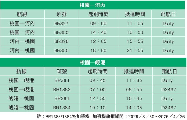 而長榮提供北中南越直飛的服務,充沛的運能不僅能在短短時間消化需要大量機位的MICE外,早去晚回的優越時間帶更能讓中南部旅客無須半夜提前出發,而是能更舒適的前往桃園機場。