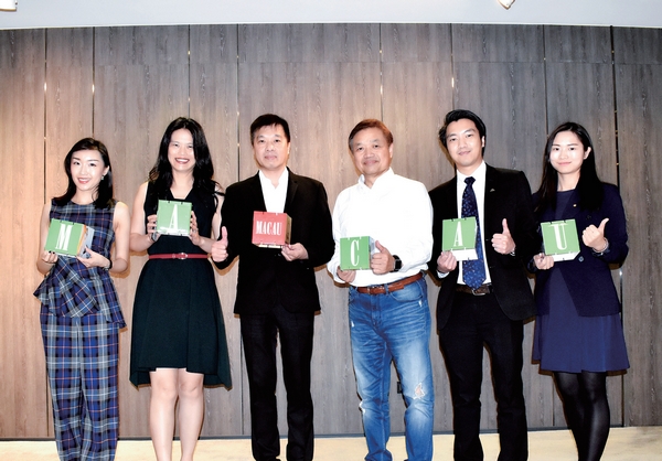 ▲(左起)澳門美獅美高梅酒店總監楊歆、總監廖千慧、高雄市旅行公會理事長吳盈良、澳門旅遊局公關顧問林鴻祥、澳門銀河酒店經理何尚澧、澳門大倉酒店經理張美君於高雄場合影。
