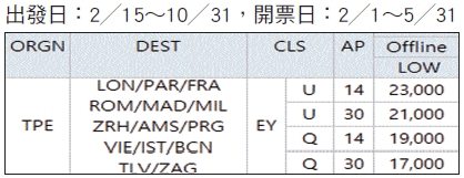 大韓航空推出歐洲線優惠促銷價格,新價格已於系統建置完成。