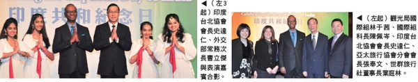 第71屆印度共和紀念日慶祝酒會於1╱22君悅酒店舉辦,現場邀請許多貴賓蒞臨,包括:外交部常務次長曹立傑、行政院政務委員鄧振中、法務部部長蔡清祥、聖克里斯多福(勝啟斯)及尼維斯大使館特命全權大使查絲敏.哈菁絲、墨西哥商務簽證文件暨文化辦事處處長Martin Torres、亞太旅行協會分會會長張奉文、世群旅行社董事長葉庭林等。宴會一開場便由4位印度交換學生獻上經典的歌舞表演,君悅酒店印度副主廚也展現精湛廚藝,為貴賓提供道地美味的印度佳餚,場面相當熱鬧。