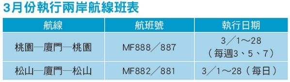 鑒於4/29之前兩岸航線除了北京、上海、廈門、成都之外,其餘中國大陸城市往返台灣之客運航班全面暫停飛航,為服務兩岸旅客出行需求,廈門航空秉持以誠為本、以客為尊的服務理念,確保桃園─廈門、松山─廈門不停航,並透過內陸綿密航線網絡,經廈門轉機延伸至成都、長沙、杭州、南京、西安、廣州、上海、北京、重慶、南寧、太原、鄭州等城市,票價往返最低6,300元起(未稅),讓需要往返兩岸的旅客仍能暢行無阻;經廈門轉機,廈門航空還為符合條件的旅客提供免費中轉住宿、免費中轉休息室等精緻中轉服務。
