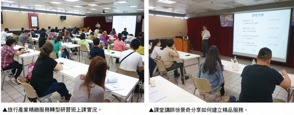 課程分為4個階段,包括國內旅遊產品為何要轉型、國內旅遊產品如何要轉型、國內旅遊產品轉型案例、國內旅遊產品品牌化,透過不同精采課程,業者受益良多。