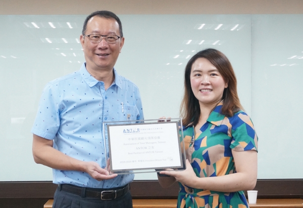 ▲(左起)領隊協會理事長張榮坤、ANTOR會長蔡璧如,致贈感謝狀。