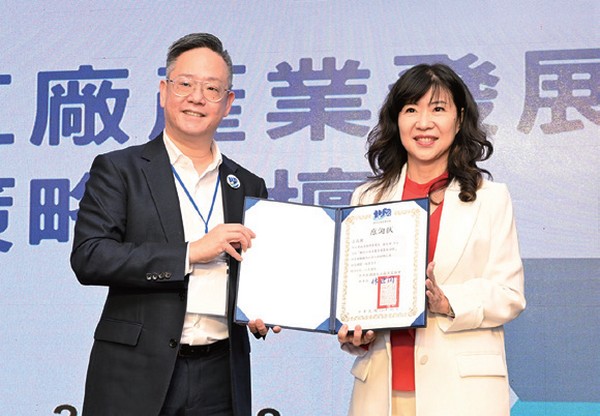 ▲新北市經濟發展局局長盛筱蓉(右)分享新北市藉由全面整合,從交通串連達到低碳出發,到展售會帶動舉辦商機,讓觀光工廠成為觀光、教育、體驗的新平台。