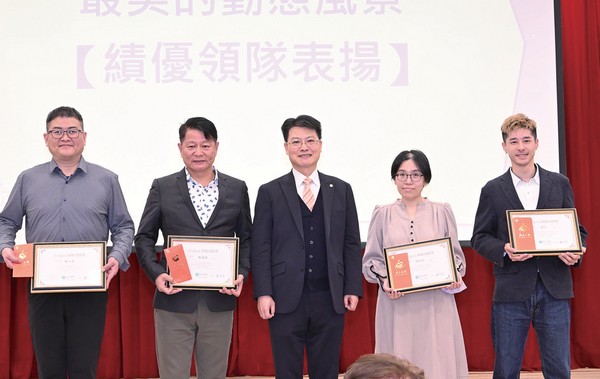 ▲長汎假期董事長葉時忠(中)頒發績優領隊表揚。