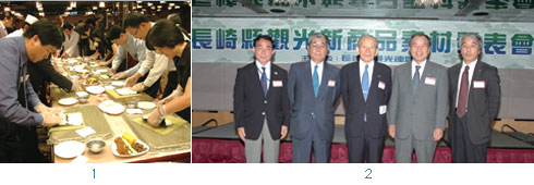 1. 在說明會現場邀請業者體驗卷壽司,大家都十分認真地埋頭製作;在長崎縣客人也可以在店家親自卷壽司之後品嚐自己的成果。