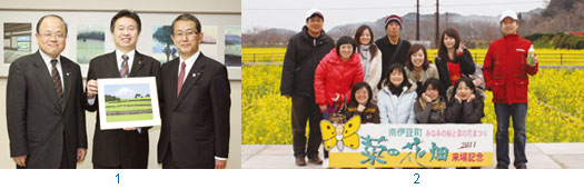 1.(右起)靜岡縣副知事岩瀨洋一郎、中華航空台灣地區行銷協理李献光、靜岡縣文化觀光部部長出野勉。2.中華航空台灣地區行銷協理李献光(右1)與靜岡縣觀光協會台灣聯絡所聯絡人王麗霞(前排蹲者右2),率領華航靜岡包機PAK成員在南伊豆油菜花田前合影,計有永盛旅行社日本線主任謝良玟(前排蹲者右1)、汎佳旅行社日本線部長黃詩齡(前排蹲者右3)、良友旅行社日本線經理黃淑玲(前排蹲者右4);(後排左起)理想旅行社業務部經理葉嘉勝、豐華旅行社總經理葉青青、鳳凰旅行社日本線團控游喬婷、京城天下旅行社總經理吳志健與凱旋日本團控邱思穎(後排站者右2)。