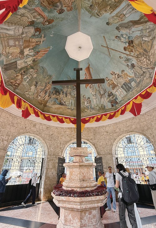 1521年葡萄牙探險家麥哲倫率領西班牙船隊抵達宿霧,並立下此十字架,標誌著基督教首次傳入菲律賓。如今的十字架被安置於宿霧市中心的禮拜堂內,天花板上的彩繪故事則還原當年的場景,是當地重要的歷史地標。
