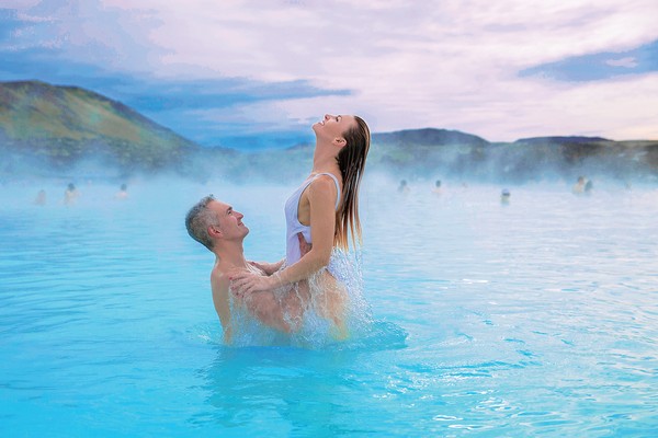 藍湖溫泉(Blue Lagoon):藍色乳白色的地熱溫泉池,將療癒與美景合而為一,是旅客必訪的打卡地標。