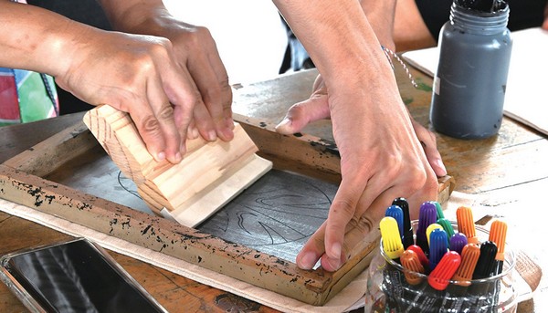 ▲在社區重要的秘境花園長短樹公園,可以體驗宋江臉譜提袋絹印,並繪上自己喜愛的色彩。