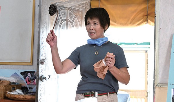 ▲在這裡必不能錯過特殊的「荷染」DIY,以蓮藕熬出的汁水為染料,經由大家巧手之下製作出獨一無二的花紋布料。