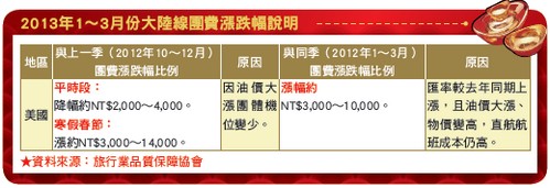 大陸線今年春節期間的團價約等同於每年第3季的價格,並無明顯的漲幅,主要在加價的部分為機票價格,對於消費者而言出國負擔不大。針對過年期間的產品內容,業者也主打吃好、住好的超值享受,提供旅遊市場物美價廉的產品,也讓消費者獲得超值的享受。