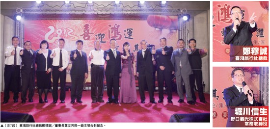 喜鴻旅遊集團總裁鄭穆誠在春酒時表示,喜鴻全體同仁今年表現優異,業績表現也是高成長;也預計在今年年中,都將陸續擴大喜鴻旅行社在中南部的布局。去年喜鴻送客人數表現耀眼,期許今年能夠突破送客人數15萬人次。
