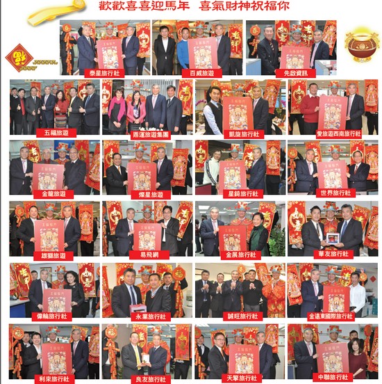 華航拜年團聲勢浩大,並以「駿馬奔騰來報喜、萬事順心又如意;歡歡喜喜迎馬年、喜氣財神祝福你」為口號,祝福業者在馬年的業績長紅。此外,華航也維持一貫傳統,向每一家旅行社獻上1張財神海報,並贈送春酒、春茶。羅皓明在祝賀同業新春愉快之際,也感謝同業長期支持,盼在今年能夠攜手同業齊心創雙贏。