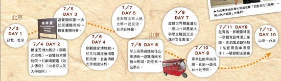 在北京的5天旅程中,31位學生分為6組活動,每組均有1位北京人民大學的學生陪伴,一起參觀故宮、長城以及賞析電影,從活動和分享中交流彼此看法;6點團體活動結束後,人民大學學生更熱情地帶領大家前往北京胡同、小吃店、王府井等年輕人聚集地,讓台灣學生進一步深入在地庶民文化。