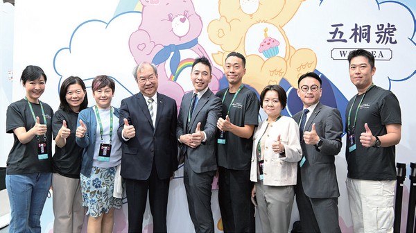 ▲(左3起)中華航空營業行銷推廣部副理席立絜、董事長高星潢、營業經理宋道明、營業行銷推廣部副理陳敏(右2)與團隊合影。
