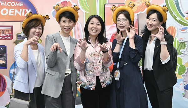 ▲(左2起)中華航空公共關係室副總經理魯淑慧、台灣虎航董事長黃世惠、中華航空資深副總經理羅雅美與中華航空團隊合影。