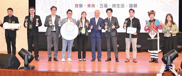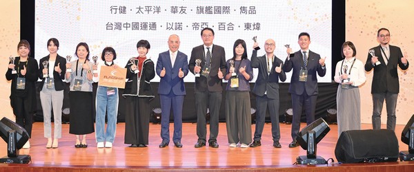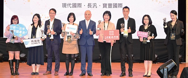 ▲旅行業品質保障協會理事長張永成(左5)頒發品保優旅選給獲獎業者。(得獎業者:名家旅行社、飛揚旅行社、微風旅行社、五福旅行社、台灣中國旅行社、現代國際旅行社、長汎旅行社、寶豐國際旅行社)