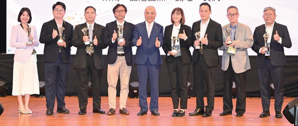 ▲旅行業品質保障協會理事長張永成(左5)頒發國際金旅獎校園組。(得獎學校:台北市立大學、蘇澳高級海事水產職業學校、建國科技大學、淡江大學、台北城市科技大學、高雄餐旅大學、致理科技大學)
