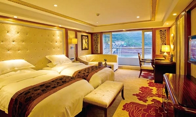 2013/4月投入運營的「總統7號」和「總統8號」豪華郵 輪,是相同設計、相同工藝的姊妹艦。全船長達到長江航運 設計極限的146.8公尺,寬度20.2公尺,包括215套豪華標準 間、位於最高層的13套豪華行政房、位於3樓船首的2套總統 套房在內的客房,共230間套房,載客人數460人;而在豪 華標準間的設計中,充分考慮到家庭遊客的實際需要,其中 100間特別設計可升級為家庭房3人房(沙發可變化成沙發 床)。如此一來,全船實際設計容量達到近580人。