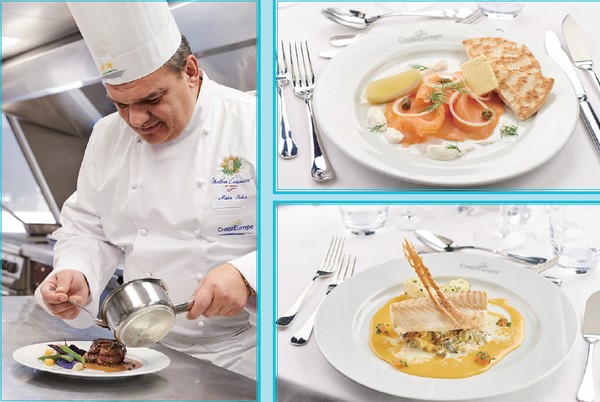▲泛歐河輪特別聘請法籍主廚坐鎮,以對於高年齡客群更友善的少油少鹽料理設定,加上佐餐酒、宛如藝術品的擺盤呈現,讓每一頓用餐都是種饗宴。