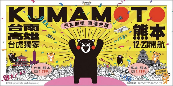 看好日本旅遊市場的無限潛力,台灣虎航於10/22宣布將於12月陸續開航「高雄-熊本」、「台南-熊本」和「台南-沖繩」等3條新航線。其中,熊本除了是飛航日本的第23個航點外,台南-熊本更是台灣虎航首條從台南出發的國際航線,藉此強化航網布局優勢,深化台日之間的飛行密度,提供日籍...